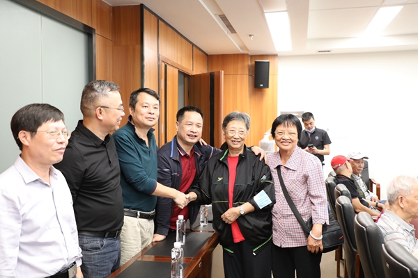 參觀完五象新區(qū),退休干部職工一行回到我院辦公樓,院領(lǐng)導班子主持召開退休職工座談會,與退休老同志們歡聚一堂,共慶重陽佳節(jié),一些久未謀面的老朋友紛紛噓寒問暖、握手擁抱、或是合影留念,每個老職工的臉上都洋溢著幸福的笑容。
