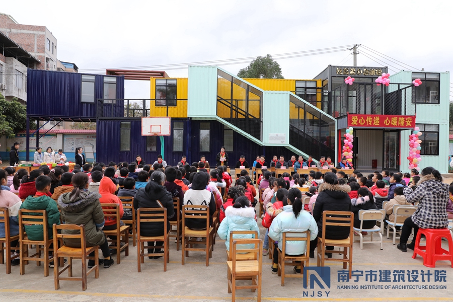 隆安縣古潭鄉(xiāng)育英村是我院定點幫扶村之一,在幫扶調研過程中,得知不少學生家離學校較遠,但學校又缺乏宿舍供學生休息。于是,我院的設計團隊及相關愛心人士積極聯(lián)系對接,引進了中國青少年發(fā)展基金會“會飛的盒子”公益項目,為上學路途遙遠的學生提供輕便安全的新型宿舍,并由我院無償提供建筑設計服務。