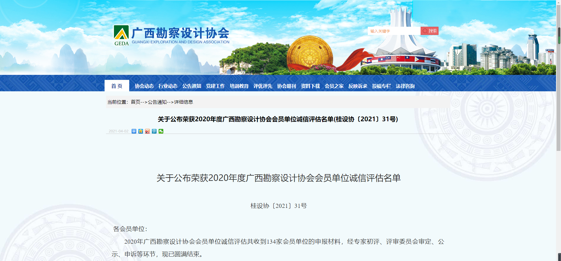 近日,廣西勘察設計協(xié)會會員單位誠信評估工作圓滿結束。我公司獲評廣西勘察設計協(xié)會AAA級誠信單位,是獲得此次信用評級最高級別的20家單位之一。此外,我公司下屬的廣西金圖工程咨詢有限公司獲評廣西勘察設計協(xié)會A級誠信單位,是獲得此次信用評級最高級別的3家審圖機構之一。
