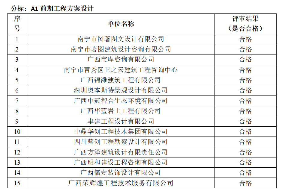 【結(jié)果公示】南寧市建筑規(guī)劃設(shè)計集團有限公司2023年對外技術(shù)合作 單位補錄(第一次)合格供方遴選結(jié)果公告