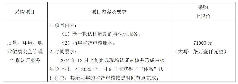 為進(jìn)一步提升企業(yè)管理水平,確保企業(yè)在質(zhì)量、環(huán)境和職業(yè)健康安全方面符合相關(guān)標(biāo)準(zhǔn)要求,南寧市建筑規(guī)劃設(shè)計(jì)集團(tuán)有限公司決定就本公司質(zhì)量、環(huán)境、職業(yè)健康安全管理體系認(rèn)證服務(wù)項(xiàng)目擬采用公開詢比方式擇優(yōu)選定供應(yīng)商,歡迎符合資格條件的供應(yīng)商前來參加。